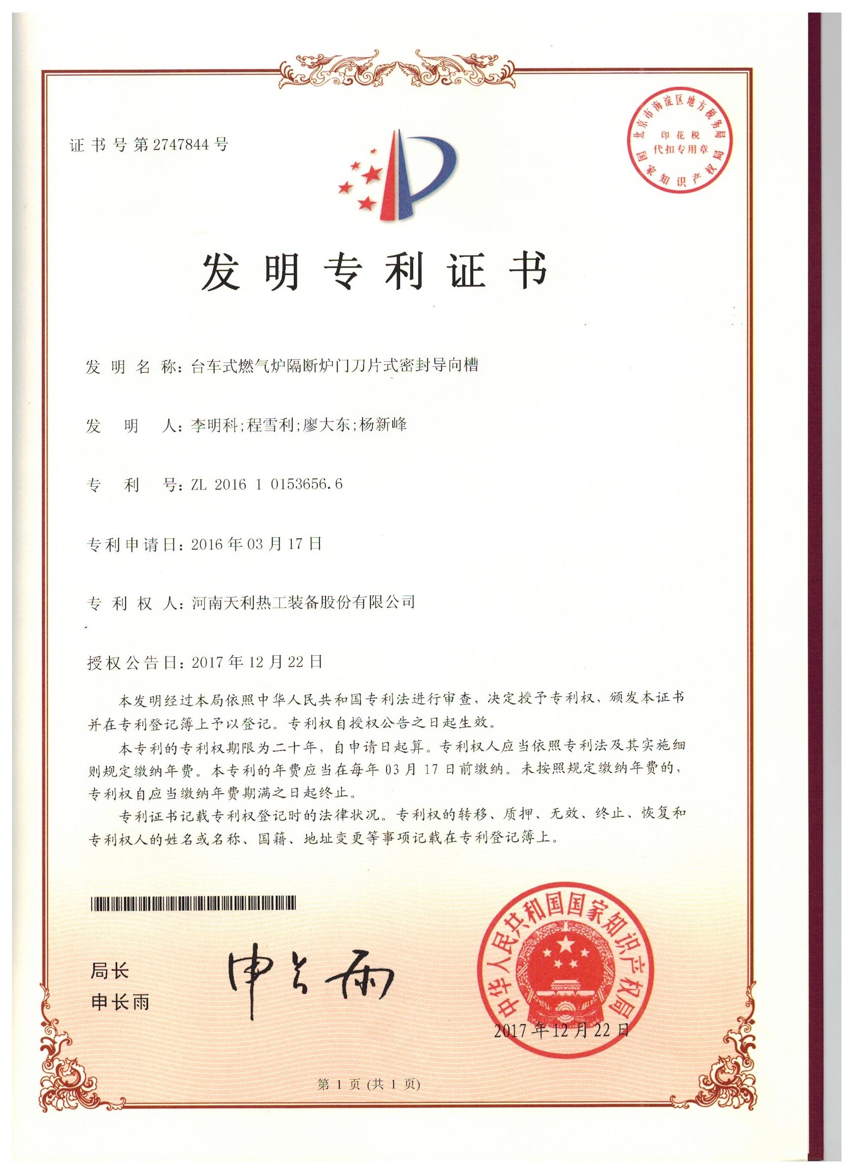 臺(tái)車(chē)式燃?xì)鉅t隔斷爐門(mén)刀片式密封導(dǎo)向槽