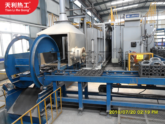 密封箱式退火爐:爐門采用獨(dú)立設(shè)計(jì)的氣缸壓緊式密封結(jié)構(gòu),密封性好,還采用電加熱方式,輻射管均勻分布在爐膛兩側(cè),爐頂配有耐熱鋼攪拌風(fēng)扇,確保爐溫均勻性。