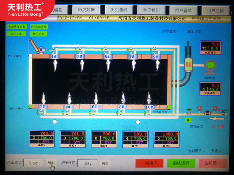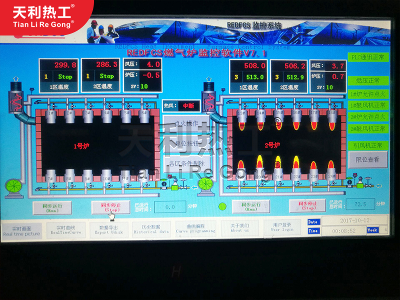 整個爐溫集中控制系統(tǒng)可實現(xiàn)多臺熱處理設(shè)備溫度的高度集中控制,并對設(shè)備運行狀態(tài)進行實時監(jiān)控。同時具有單獨操作功能。爐子集中監(jiān)控系統(tǒng)功能主要包括以下幾部分:
